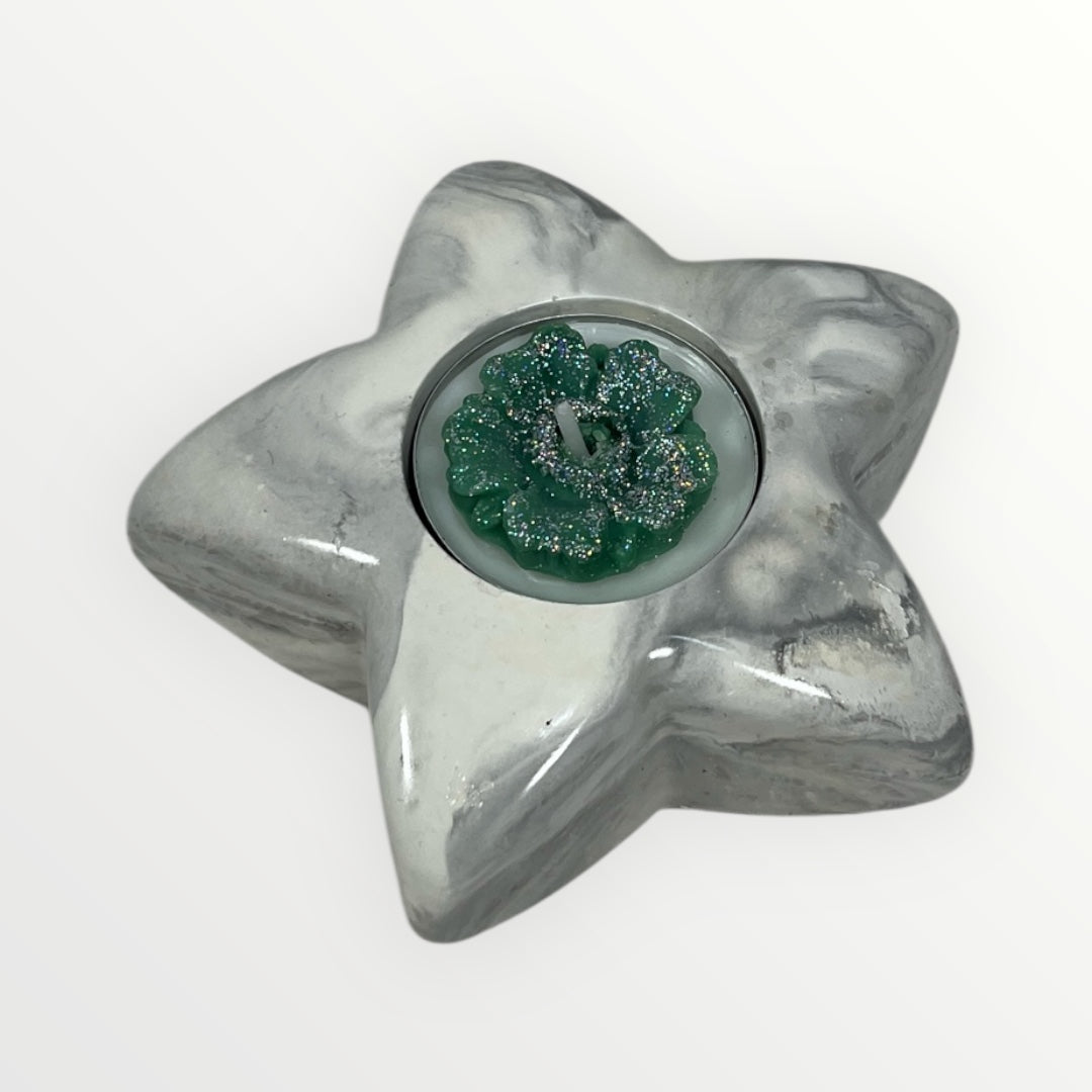 Jokainen tähti-muotoinen Lämpökynttiläkuppi valetaan käsin Flow-Flo -studiossa. Kipsin pinta viimeistellään huolellisesti, ja pieni kuva-aihe (perhonen, kukka tai abstrakti kuvio) antaa tuotteelle persoonallisen ilmeen. Se on kuin pieni taideteos, joka sopii mihin tahansa kotiin.